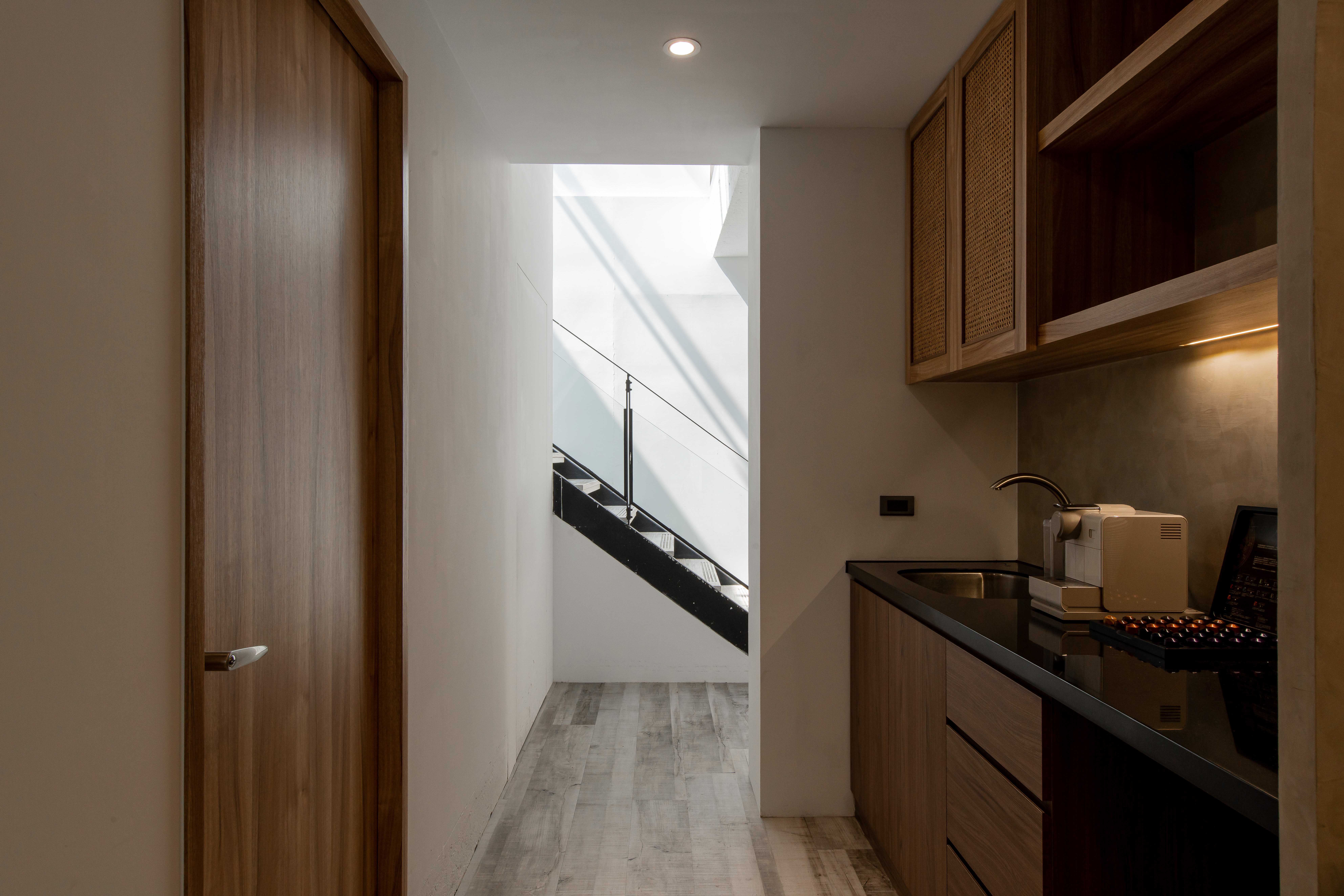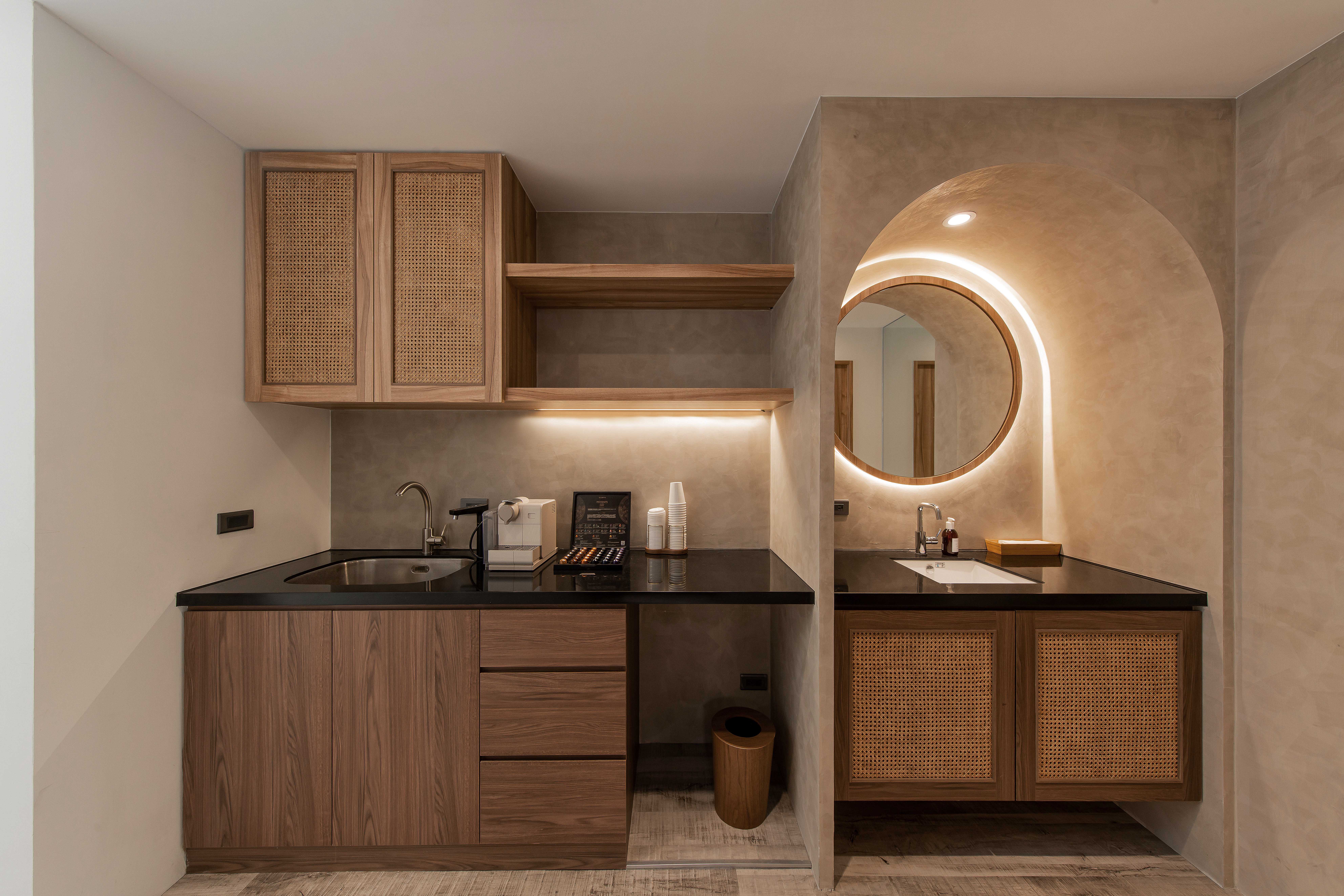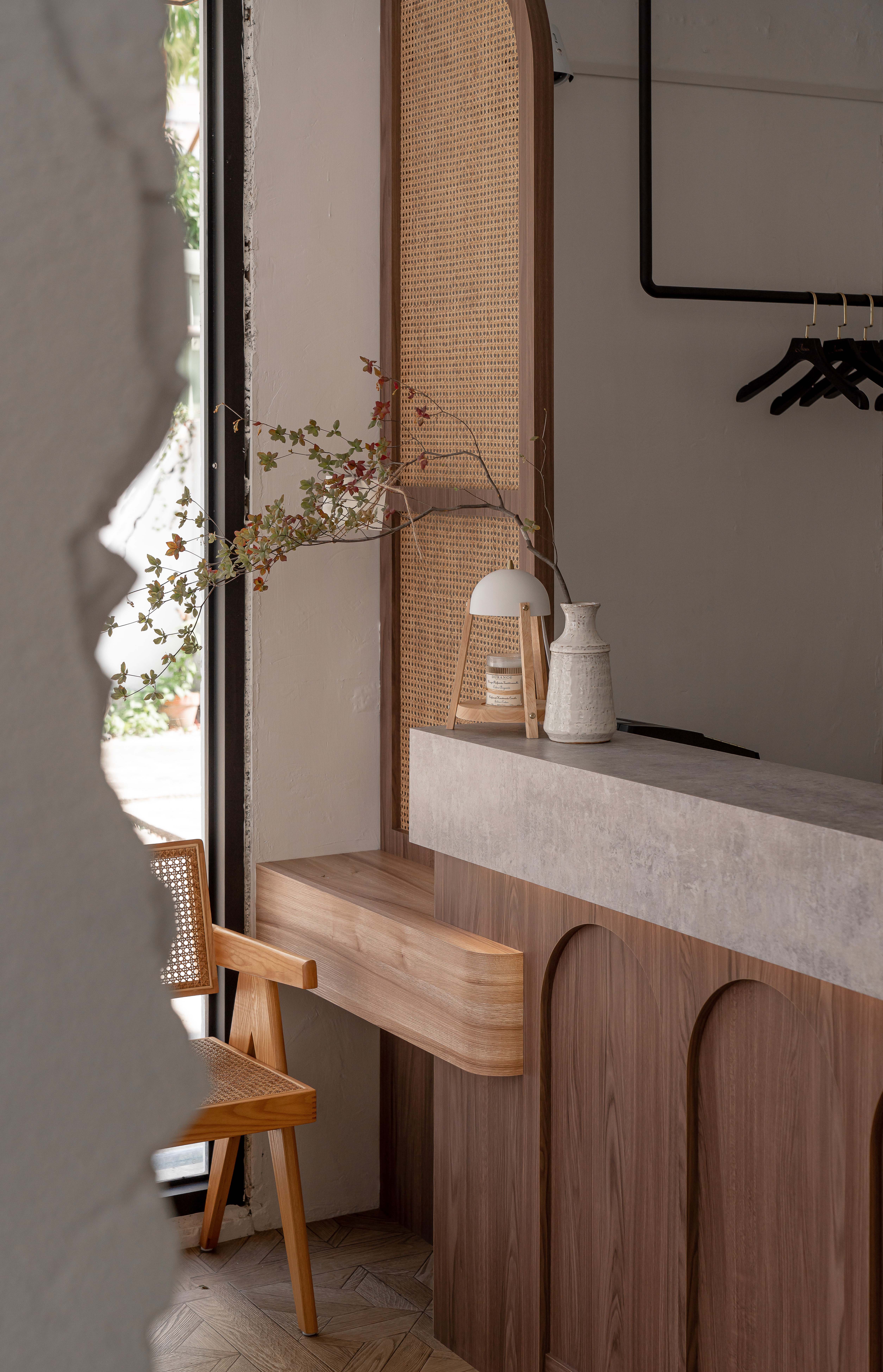 簡約的木質座位區與柔和的照明營造出一種舒適的體驗空間,讓顧客可以盡情放鬆,享受